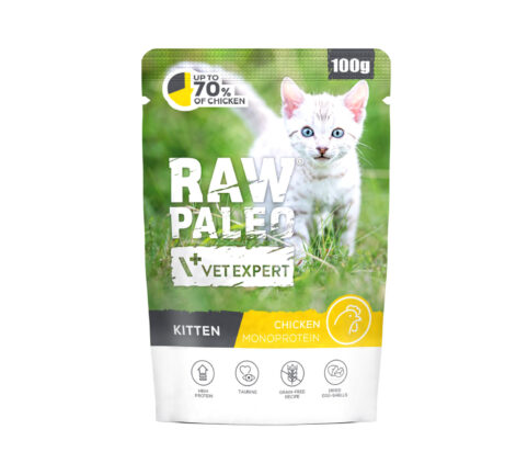 RAW PALEO Chicken Kitten is a complete feed for kittens from weaning to 1 year of age.