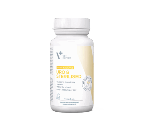 The product is intended for small breed dogs and cats as daily support for urinary tract function, helpful both preventively and in cases of recurring problems.